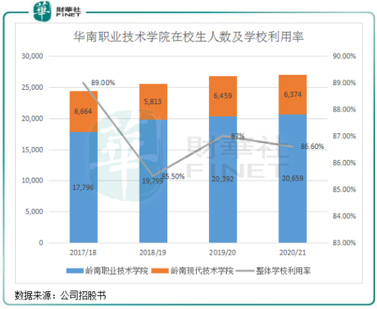 根据招股书,按2019/20学年在校生人数计,华南职业教育是大湾区最大的民办学历职业教育服务提供商。其旗下有两所学校,分别是岭南职业技术学院(提供大专课程)和岭南现代技师学院(提供中专课程及高职课程)。岭南职业技术学院有两个校区,一个在广州,一个在清远;岭南现代技师学院则位于广州。
