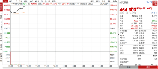 6月16日消息,正畸龙头时代天使上演造富狂潮,公司股价高开高走,涨幅一度逼近180%,最高见490港元,截至目前,公司股价涨幅168%,报价464.6港元,一手净赚5.83万港元,最新市值770亿港元。
