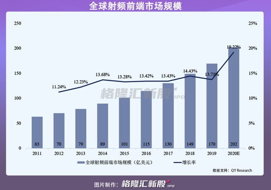 随着移动通信从2G发展到5G时代,移动网络越来越快,需要射频前端芯片持续的支持。移动终端设备从手机到平板到智能穿戴日益丰富,智能医疗、智能家居等新兴领域也逐渐发展,全方位促进全球射频前端市场规模高速增长。
