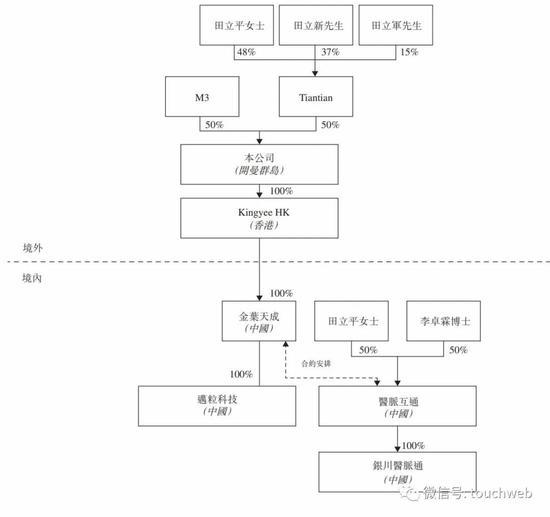 Tiantian分别由田立平女士、田立新及田立军持有48%、37%及15%股权。Tiantian持有医脉通另外50%股权。