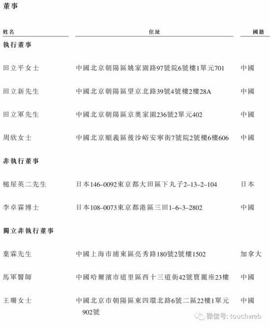 田立平女士,董事长、首席执行官、执行董事兼控股股东之一。田立平女士为田立新及田立军的胞姐。