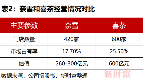 和行业另一个头部公司喜茶相比,奈雪门店和市场占有率要全面落于下风(表2)。门店数量喜茶以600家超过奈雪的420家,市场占有率喜茶领先7.8个百分点;而喜茶在一年前即2020年3月时融资估值就有160亿元,一年又3个月过后,喜茶估值预计远远高于奈雪。