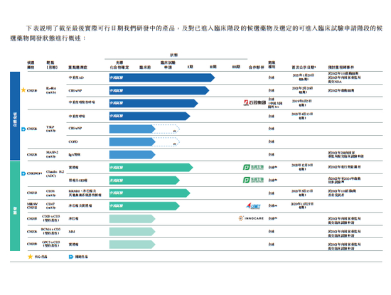 目前,已有9种可进入临床试验申请及临床阶段的候选药物处于内部研发阶段,其中5种候选药物处于临床开发阶段,包括IL-4Rα单抗、Claudin 18.2靶向抗体偶联药物(ADC)、CD47抗体等等。