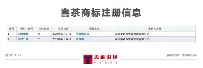 图——喜茶商标注册信息