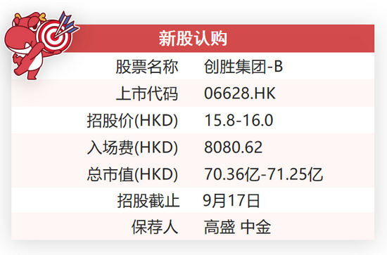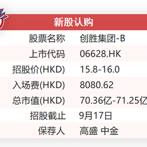 创胜集团-B于今日(9月14日)至9月17日招股,总计拟发行4033万股,其中香港公开发售占10%(403.3万股)。