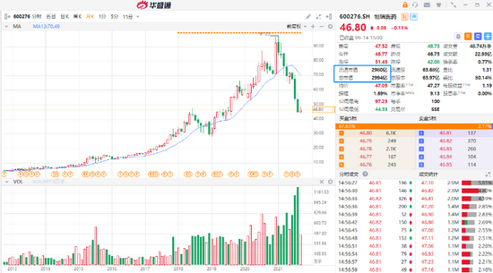 据恒瑞医药财报显示,公司的核心创新药PD-1在2020年销量同比增长了326%,达到45亿元,约占2020年总收入的16%。而默沙东旗下的PD-1品牌可瑞达,在2020年更是全球销售达到143.8亿美元。截至9月14日收盘,恒瑞医药市值仍高达近3000亿人民币。