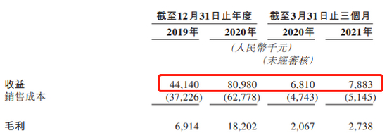 从公司招股书披露的财务状况来看,公司目前并没有获准用于商业化的产品,因此并没有因此获得收益。但公司在2019年和2020年仍实现了4400万和8000万的收入,今年Q1也实现了780万收入,均来源于CDMO服务。