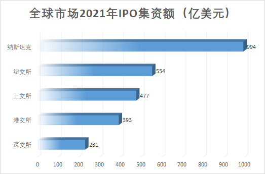 据毕马威数据,纳斯达克仍以融资额994亿美元居首,第二位为纽约交易所,料集资554亿美元;第三位则仍是上海证券交易所,但集资额按年料减少6.5%至477亿美元;第五位继续是深圳证券交易所,但集资额料按年升13.3%至213亿美元。