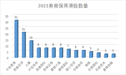 四、中金香港保荐31家夺冠,高盛保荐21家居于次席