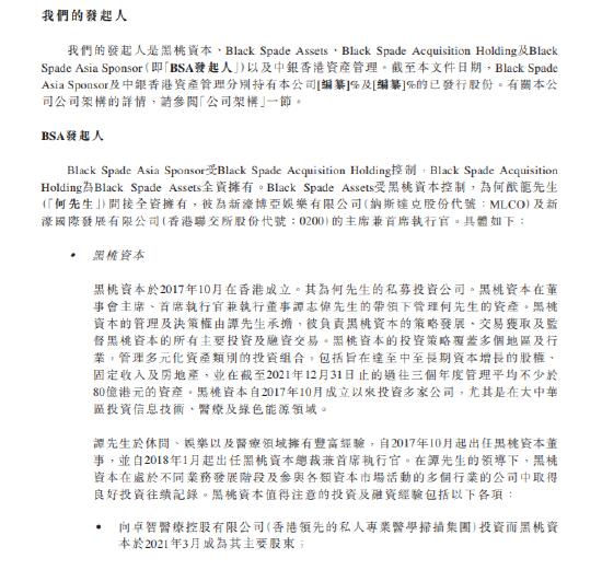 公司发起人大有来头,根据招股书,黑桃资本由赌王儿子何猷龙全资拥有,为何鸿燊和二太蓝琼缨所生,上面有四个亲姐姐。何猷龙目前担任新濠博亚娱乐和新濠国际的董事局主席兼首席执行官。
