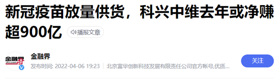 有公司靠卖新冠疫苗,1年净赚900亿元。