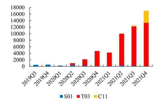 尽管零跑汽车定位于15至30万元的中高端主流新能源汽车市场,但公司目前销量担当却是T03这款A00级的低端车型。2021全年,零跑汽车共交付43748辆,其中T03交付量39149辆,占比高达89.49%。
