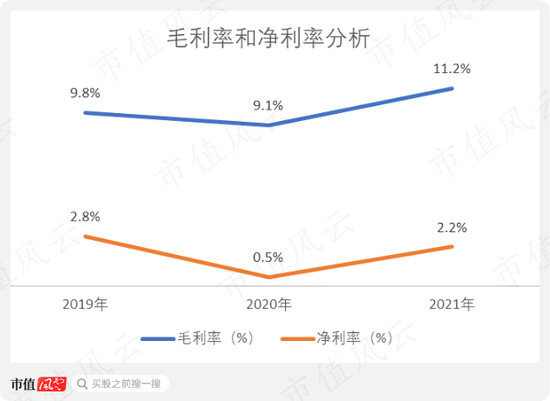 2019-2021年,百果园的毛利率只有10%左右。净利率最高不到3%,2020年疫情期间甚至低到只有0.5%。