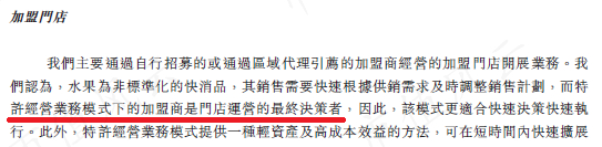根据百果园招股书的说法,现有的5336家加盟门店中,有4382家(占比80%以上)是自行管理的加盟店,剩下的则是委托管理的加盟店。