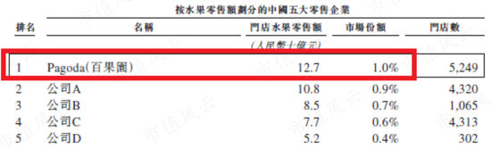 根据公司引用的第三方数据,按照2021年的水果零售额计算,百果园是中国最大的水果零售商,也是中国最大的水果专营零售企业。