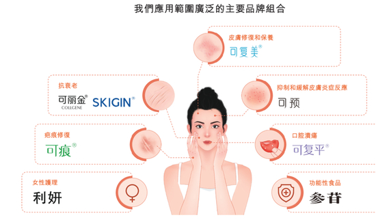 巨子生物开发的胶原蛋白为关键生物活性的专业皮肤产品,产品组合达到105项SKU,代表产品包括可丽金和可复美等。