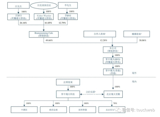 招股书显示,飞天云动在上市前的股东架构中,控股股东为汪磊、李艳浩,为一致行动人,合计持股49.66%;其他8名自然人股东,持股12.28%:此外,机构股东,包括同创伟业、软银赛富等合计持股38.06%。