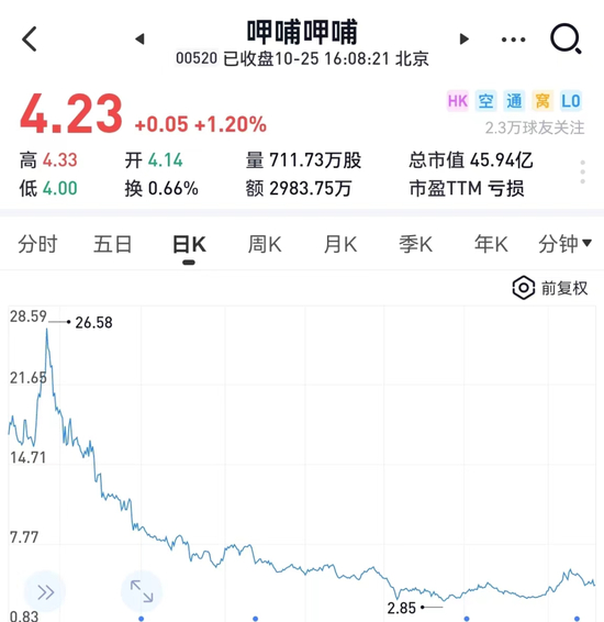 而从性价比和诚意方面,呷哺呷哺旗下的凑凑火锅,特别是血和豆腐可无限添加,曾在呷哺呷哺解决工作餐,一个套餐三四十元,比杨国福麻辣烫划算不知多少,但从股票盘面上看,呷哺呷哺跌势如虹,如今股价还不到历史最高价的零头,餐饮+港股,人间悲剧——双杀。