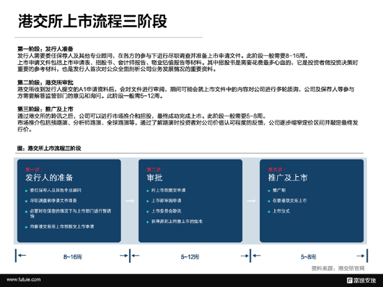 港交所上市流程分为三个阶段:分别是发行人准备阶段、港交所审批阶段和推广及上市阶段。