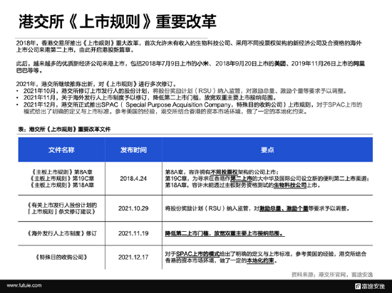 2018年,香港交易所推出《上市规则》重大改革,首次允许未有收入的生物科技公司、采用不同投票权架构的新经济公司及合资格的海外上市公司来港第二上市,由此开启港股新篇章。