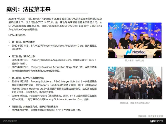 美东时间2021年7月22日,法拉第未来(Faraday Future)成功以SPAC的方式在美国纳斯达克交易所挂牌上市。该公司创办于2014年5月,是一家全球共享智能出行生态系统公司。从SPAC成立到成功挂牌上市,以下梳理了法拉第未来和SPAC公司Property Solutions Acquisition Corp.的时间线: