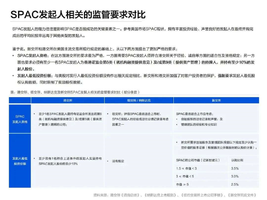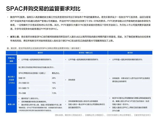 SPAC上市监管要求对比