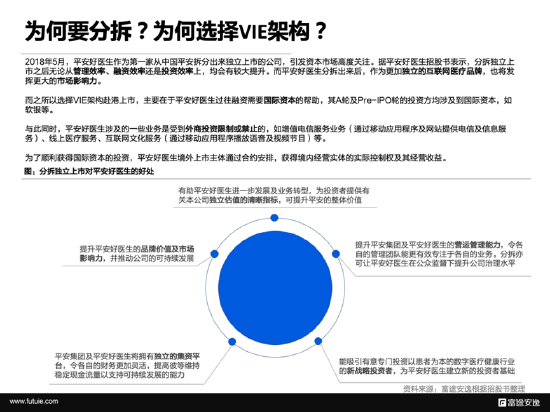 简而言之,分拆之后无论从管理效率、融资效率还是投资效率上,均会有较大提升,而平安好医生分拆出来后,作为更加独立的互联网医疗品牌,也将发挥更大的市场影响力。