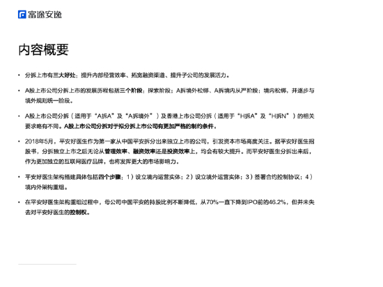 [1]《第15项应用指引——有关发行人呈交的将其现有集团全部或部分资产或业务在本交易所或其他地方分拆作独立上市的建议之指引》[2]《上市公司分拆规则(试行)》[3] 平安好医生招股书[4] 中国平安2017年年报