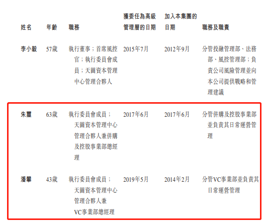 天图投资的高管团队包括王永华、冯卫东、邹云丽、李小毅、朱玺、潘攀。