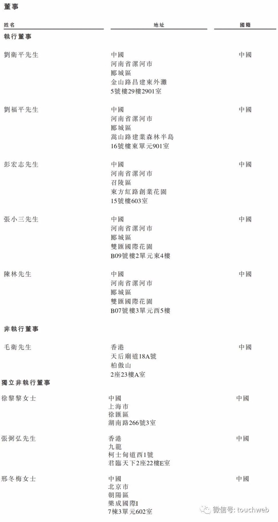 刘卫平堂弟刘忠思的表兄彭宏志为执行董事、首席财务官兼副总裁,刘卫平堂弟刘忠思的表弟陈林是执行董事兼副总裁。刘忠思本人则是公司副总裁。刘卫平与江淳女士为配偶关系。刘福平与赵纯纯女士为配偶关系。