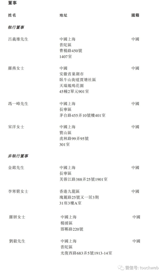 上美集团执行董事为吕义雄、罗燕、冯一峰、宋洋女士;非执行董事为金铭、李寒穷女士;独立非执行董事为梁浩新、罗妍女士、刘毅。