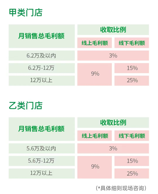 百果园甲类门店和乙类门店的收费规则。