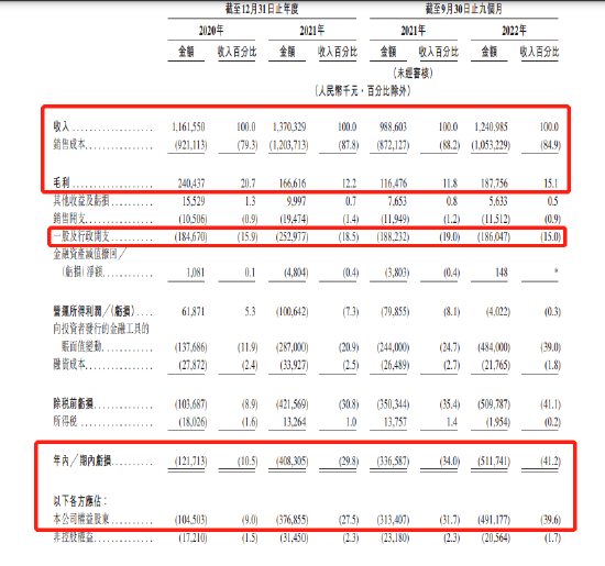 根据公司招股书,于2020年、2021年、以及截至2022年9月30日止九个月,公司收入分别约为人民币11.61亿元、13.7亿元以及12.41亿元;同期,毛利分别约为2.4亿元、1.67亿元以及1.88亿元,2020年以来公司毛利率有所下滑,而2022年前9个月毛利率有所回升。