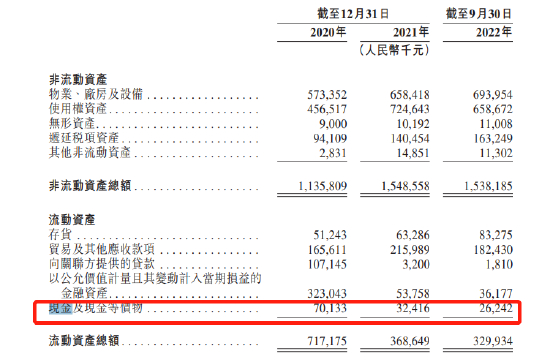 截至2020年及2021年12月31日、2022年9月30日,公司均录得流动负债,负债净额分别为15.19亿元、22.58亿元、28.51亿元。陆道培表示,负债净额(或资产不足)状况会使公司面临流动资金短缺的风险。截至目前,公司现金及现金等价物持续减少,从2021年底3.69亿减少至目前的3.3亿。
