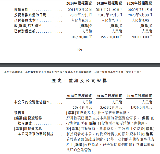 陆道培医疗已经历多轮融资,2014年股权融资1.09亿元,每股成本0.59元,投后估值2.59亿;2018年日工资3.58亿,成本7.49元,投后估值36.33亿元;2020年融资1.5亿元,成本9.9元,投后估值49.5亿元,前投资者没有任何禁售期。
