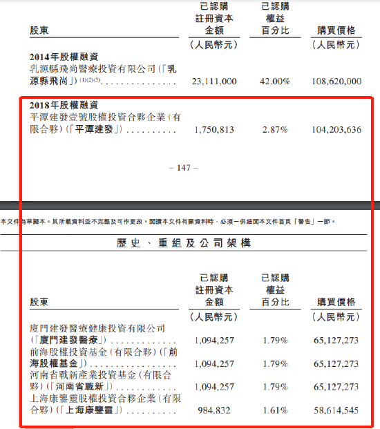 2018年,陆道培医疗引入平潭建发、厦门建发医疗、前海股权、上海康鉴灵,对价分别为1.04亿、6513万、6513万、6513万以及5861万。