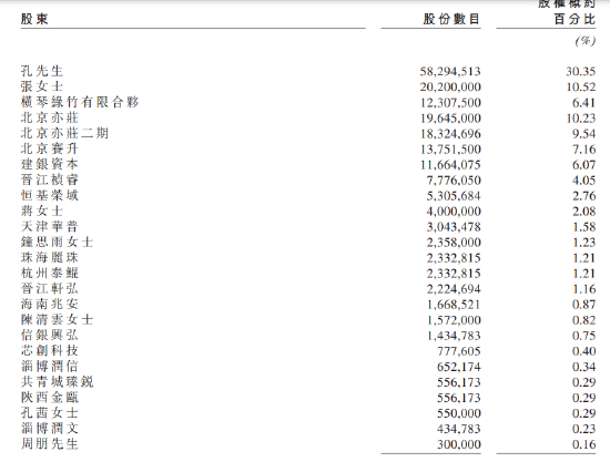 截至最后可行日期,马骉为北京赛升、北京亦庄及亦庄二期同一控制人,其也是赛升药业实控人,合计控制北京绿竹26.93%,建银资本持股6.07%,成本12.86元,公司估值近乎翻倍,这意味着北京绿竹尚未上市,建银资本已经浮盈1.18亿;丽珠医药持股1.21%,共计投资3000万;泰格医药控制的杭州泰鲲持股1.21%,同样投资3000万;中信银行海外投资平台信银兴弘投资3300万,持股0.75%。