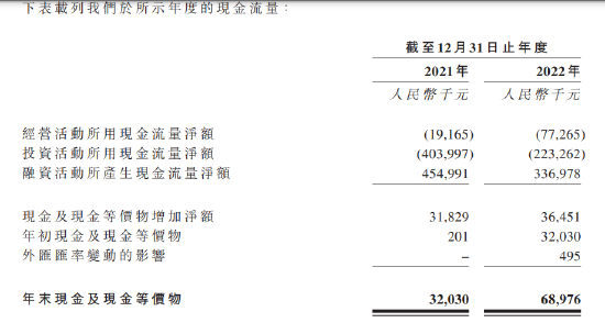没有经营收入,带来的直接后果就是公司经营活动现金流持续流出,2022年流出额7727万,是2021年流出额的3倍有余。现金流的的巨大缺口使得公司不得不融资补血。