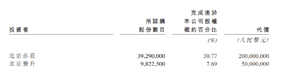 2019年7月,公司引入A轮融资,北京亦庄和北京赛升分别投资2亿及5000万,分别持股30.77%及7.69%。