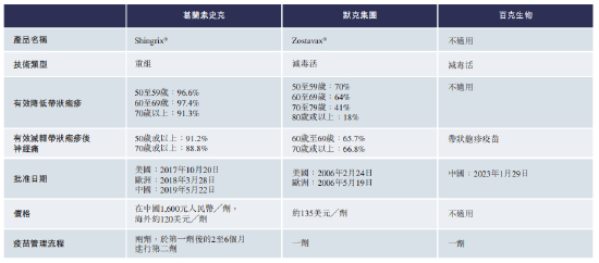 目前LZ901尚处于二期临床,且预期2027年二季度完成三期临床。截至最后可行日期,中国共有两款带状疱疹疫苗获批,即葛兰素史克的Shingrix®,其以2021年的销售收益计几乎占全球市场份额近100%,每剂高达1600元以及百克生物的带状疱疹减毒活疫苗。