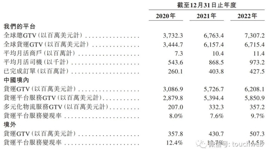 招股书显示,货拉拉全球GTV由2020年的37.32亿美元增至2022年的73亿美元,复合年增长率为39.9%。货拉拉2020年至2022年平均月活用户由730万增至1140万,平均月活司机由50万增至100万。