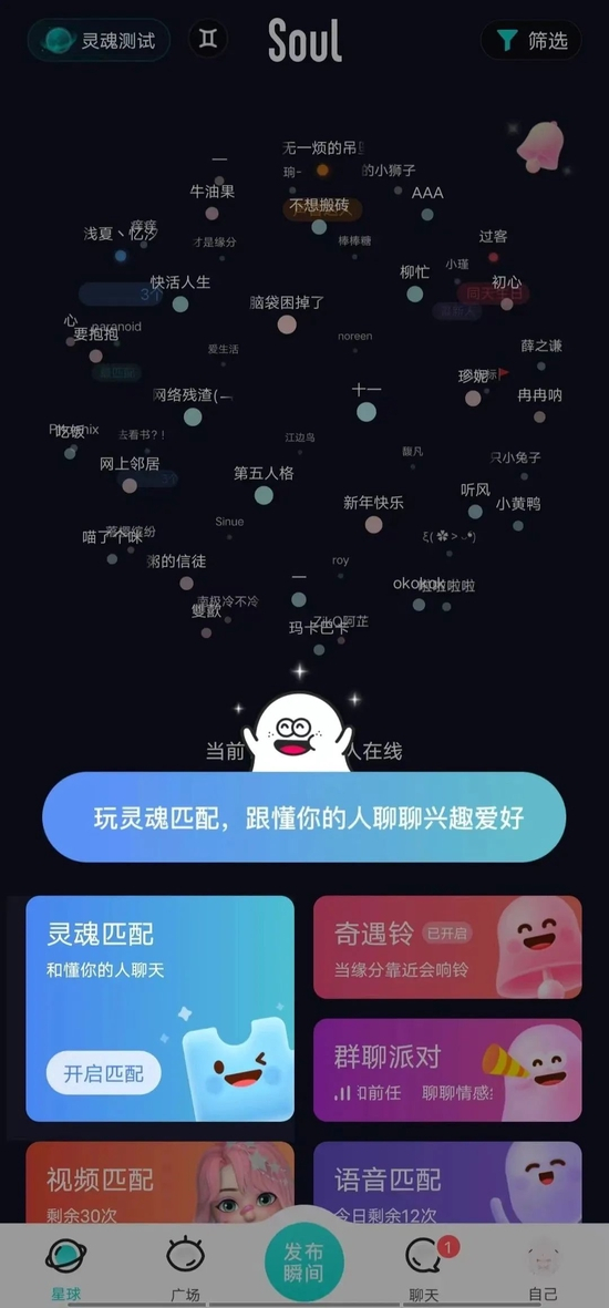 不过目前,它主打的“灵魂社交”玩法并没有什么变化——通过30秒的灵魂鉴定,找到真正的自己,并在社群中自由表达,与懂你的人即时互动。