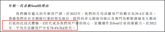 “年轻一代”被Soul反复提及,它还自信称,“我们拥有庞大的年轻用户群”。