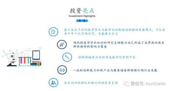 梅斯健康的投资亮点归纳来讲有五个方面,包括独特的业务模式、在医生群体中巨大影响力带来的广阔市场空间、基于数字化平台实现创新药械商业化、一流的创新能力和强大的投资者支撑。