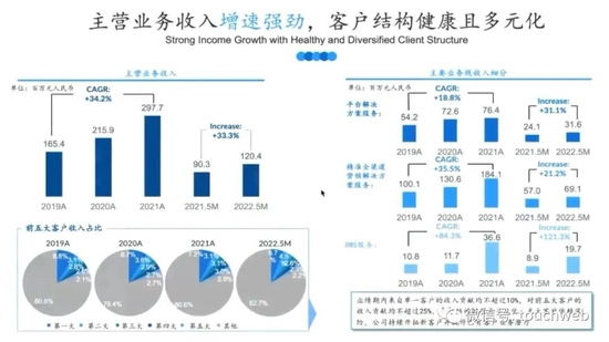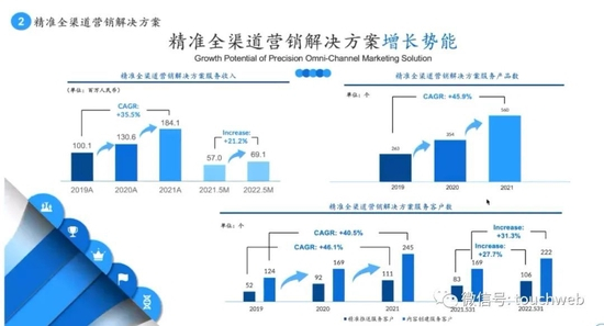 在精准全渠道营销解决方案上,梅斯健康的业绩基本保持35%高速增长,客户数及产品数也都保持高速增长,为后续发展打下非常好的基础。