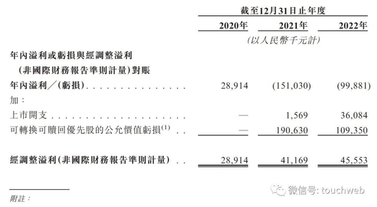 梅斯健康2020年、2021年、2022年年内盈利分别为2891万元、-1.51亿元、-9988万;经调整利润分别为2891万元、4116.9万元、4555万元。
