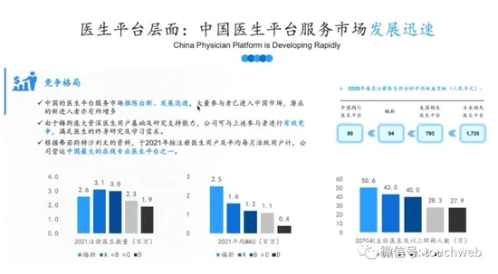 如前所述,梅斯健康的医生平台不管是信息的深度和广度,还是平台上各方面的应用都与日本及欧美的差距依然较大,都有着非常大的发展空间。