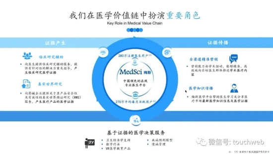 梅斯健康以医学起家,后面又将医学与数字化相结合,所以梅斯健康的整体业务布局也是围绕医学价值链,即循证医学证据:围绕证据的产生,证据的传播,和目前正在拓展的证据的决策服务,去规划整个业务板块。