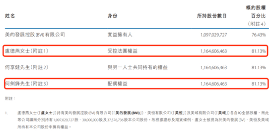 据美的置业2023年年报披露,该公司的控股股东为美的强展控股(BVI)有限公司,持股76.43%,何享健、卢德燕亦为控股股东。其中,卢德燕通过美的发展控股(BVI)有限公司、美恒有限公司和美域有限公司间接控制美的置业81.13%的股份。