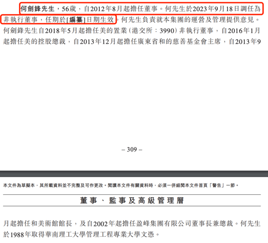 随着何剑锋的退出,美的集团在港交所递交的聆讯后招股书也将其名字彻底删除。